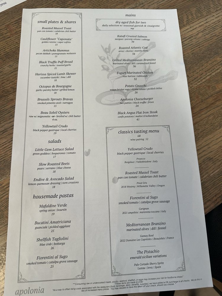 Apolonia is a modern European-Mediterranean restaurant and bar located at 2201 S Michigan Ave in Chicago. Known for its upscale and trendy ambiance, Apolonia offers a variety of Mediterranean-inspired dishes with a modern twist. Customers have praised the truffle puff bread for its airy texture and strong truffle flavor, as well as the shellfish tagliolini with generous amounts of crab in a flavorful sauce. The yellowtail crudo and mussel toast are also recommended starters. Main dishes like the dry-aged fish and Atlantic cod have been praised for their perfectly cooked fish and delicious accompaniments. While some diners have found dishes a bit salty, desserts like pistachio ice cream and tiramisu have been standouts. Overall, Apolonia offers a chic and intimate dining experience perfect for a date night or special occasion.